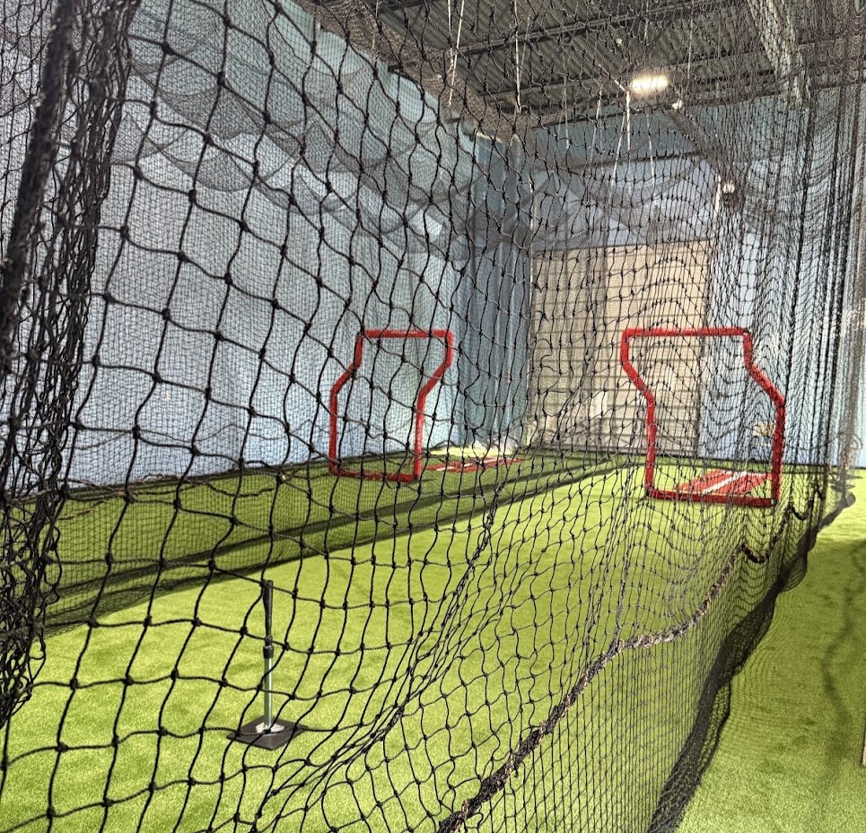 Each batting cage will have a pitching machine along will both baseball/softball machine balls to feed into the machine. Each batting cage also has a tee and Z-screen available. In the soft toss/glove work square, there will be two tees and two soft toss nets, along with a J-band station and rebound wall. Buckets of baseballs and softballs (11 in and 12 in) will also be available for general use. Real baseballs and softballs cannot be used in the pitching machine, but can be used for soft toss, tee work, glove work, and front toss in both the soft toss areas and batting cages. In the workout area, there are jump ropes, medicine balls, dumbbells, agility ladders, a plyo box, yoga balls, and a sliding mat. Finally, there are pitching mounds and pitching mats available for use as well.